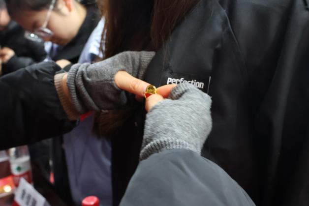 宣誓仪式上,经济管理学院党委副书记丁明强宣读了经上级党组织批准的39位新发展党员名单,各学生党支部书记为新党员们佩戴党员徽章、发放《中国共产党章程》。