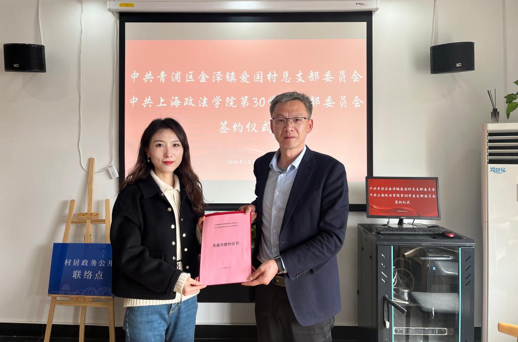 行走的思政课,助力乡村振兴:经管学院上政第30学生党支部与青浦区金泽镇爱国村党总支共建签约