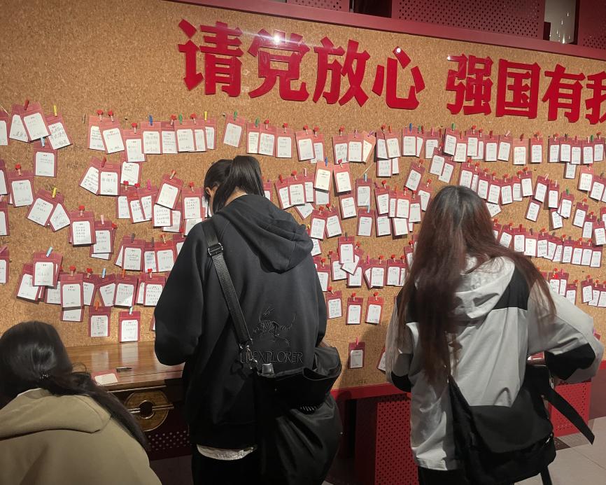 离开主馆前,在会场一侧设立了留言墙。在留言墙上,同学们纷纷写下了此次红色之旅带来的深刻感想在结束参观中共四大会址后,同学们到达上海鲁迅纪念馆。纪念馆以专题划分为六个展区,党员们通过参观馆藏文物,如衣物、手稿、书信、照片以及藏书等,了解鲁迅先生在水深火热的时代中、在黑暗中探索,用文字发出振聋发聩的呐喊,深刻感受到鲁迅先生坚定的理想信念。