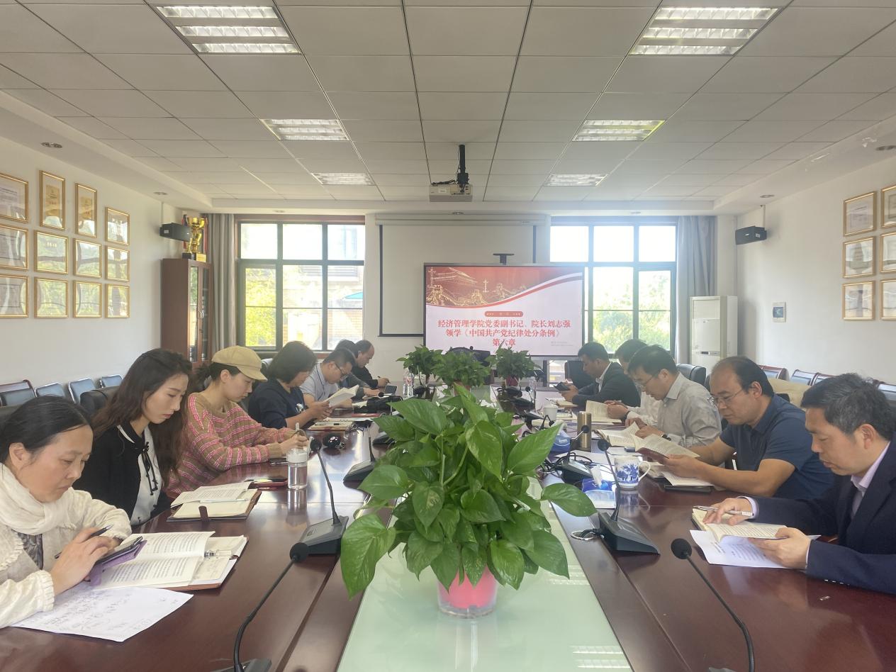 为推动党纪学习教育进一步走深走实,5月10日上午,经济管理学院党委在A3-201会议室开展党纪学习教育读书班活动,经济管理学院全体班子成员、党委委员、党支部书记、专职组织员参加。