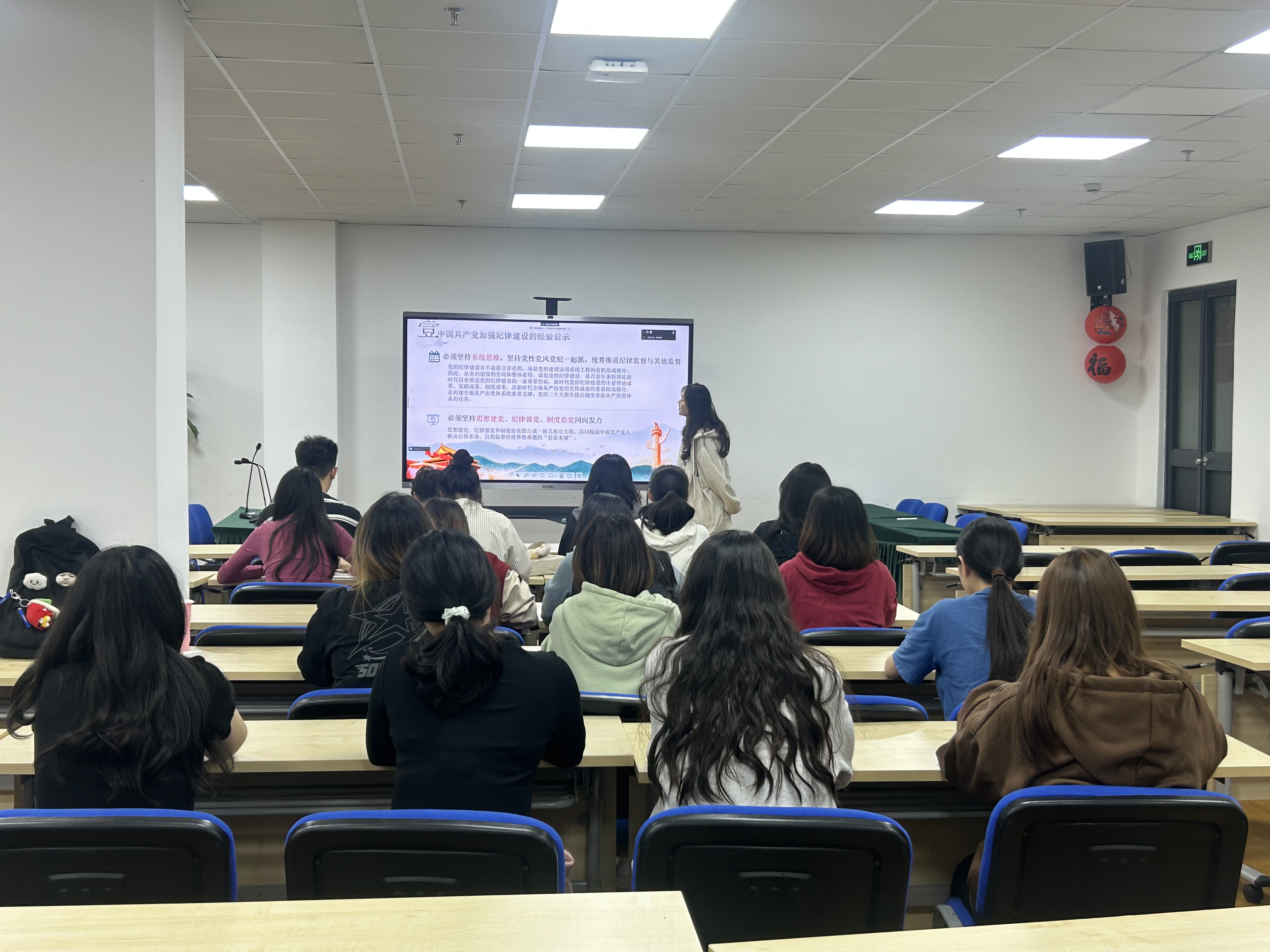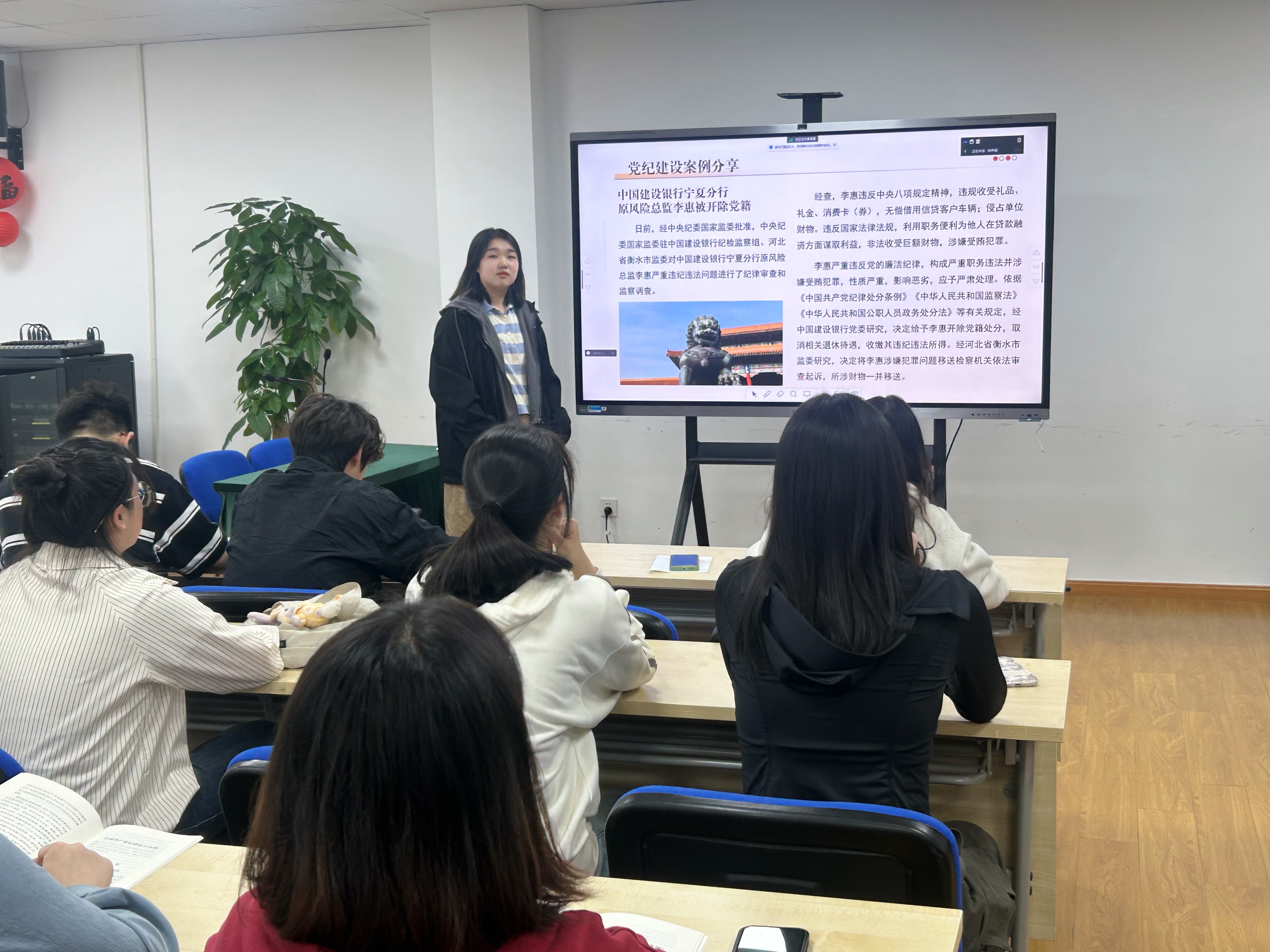 秦怡萌同学通过分享典型案例的形式,对加强党的纪律建设的必要性进行了分析。通过对违反“六大纪律”的典型案例进行分析,进一步深化了同学们对加强党的纪律建设的重要性和违党纪问题危害性的认识。
