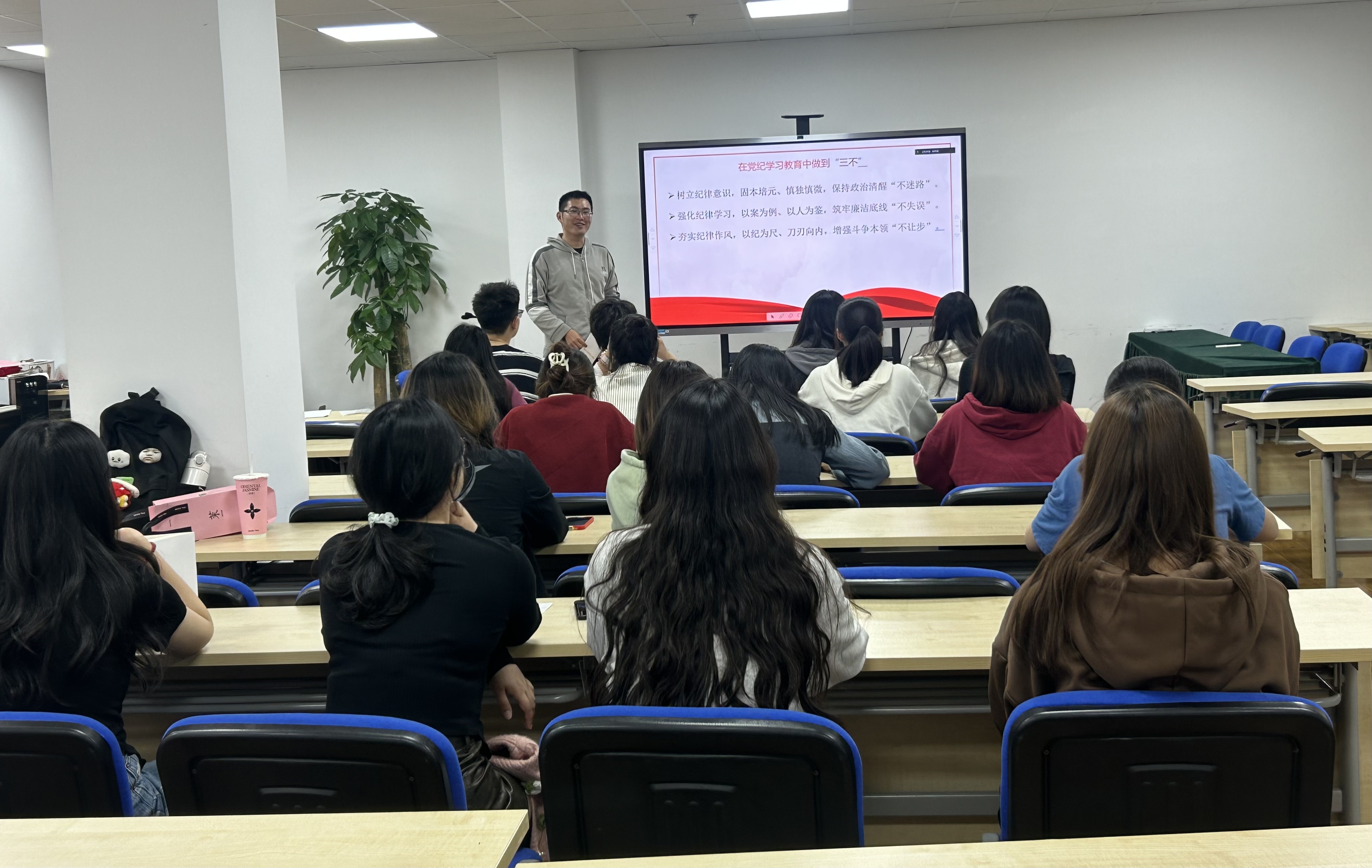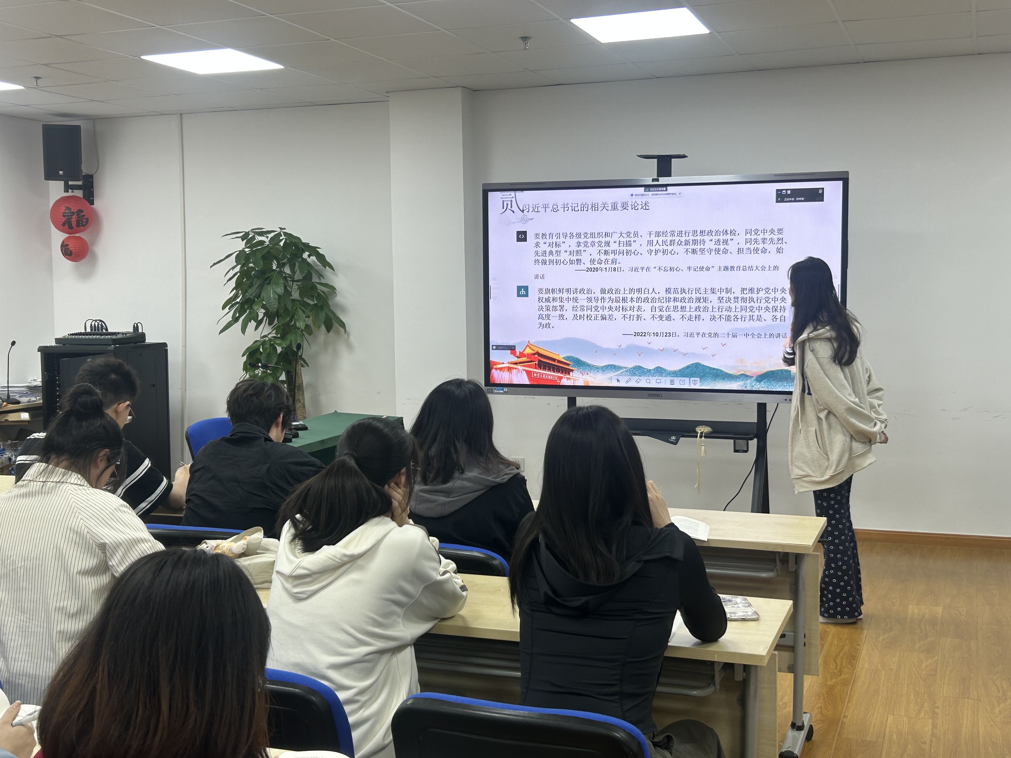 秦怡萌同学通过分享典型案例的形式,对加强党的纪律建设的必要性进行了分析。通过对违反“六大纪律”的典型案例进行分析,进一步深化了同学们对加强党的纪律建设的重要性和违反党纪问题危害性的认识。