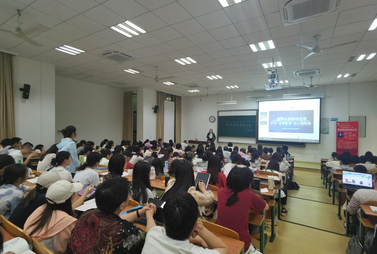 齐徐缘结合了具体案例详细了企业虚开发票、骗取出口退税等税务问题,展示了警方和税务部门是如何运用大数据技术来有效识别并定位涉嫌犯罪的企业及团伙的。她进行了两个税务稽查案例分析,其一为:协同联动数据赋能,打击“国际货代”虚开案;其二为:护航外贸发展,打击“网球线”出口骗税案。讲座中,她凭借其丰富的税务稽查经验,为在场师生详细介绍了税务稽查的重要性及其在维护税收秩序中的作用。分析了“国际货代”虚开案,通过具体案例展示了税务机关如何利用大数据技术,实现跨部门协同联动,精准打击虚开增值税发票等违法行为。详细展示了警方及税务部门通过大数据技术识别分析企业的异常行为,建立异常资金流向打击模型,揭示企业资金的真实来源和去向,从而有效识别并定位涉嫌犯罪的企业及团伙。主要是使用数据开发平台,设定多个财务指标,自动筛查并判断企业是否存在可疑的经营活动,该过程包括构建指标库、执行周期性扫描以及根据综合指标评估企业的风险等级,从而形成风险名单并持续监控。案例分析深入浅出,使师生对税务稽查工作有了更为直观的认识。接着,她分享了“网球线”出口骗税案的稽查过程。此案例涉及复杂的国际贸易环节,详细阐述了税务稽查人员如何通过细致的调查和分析,揭露并打击了一起典型的出口退税诈骗行为。