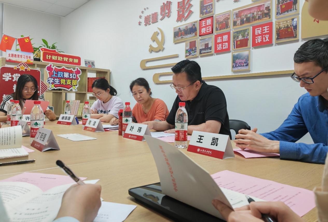 5月23日,上政第30学生党支部与计财处党支部在新经管楼201会议室联合开展主题为“学党纪、树新风、扬正气”的党纪联学活动,推动党纪学习教育走实走深。计财处党支部书记、计财处处长叶玮,计财处副处长陶洁,经管学院党委副书记丁明强以及两支部全体党员、部分入党积极分子参加活动。活动由上政第30学生党支部书记孔令媛主持。