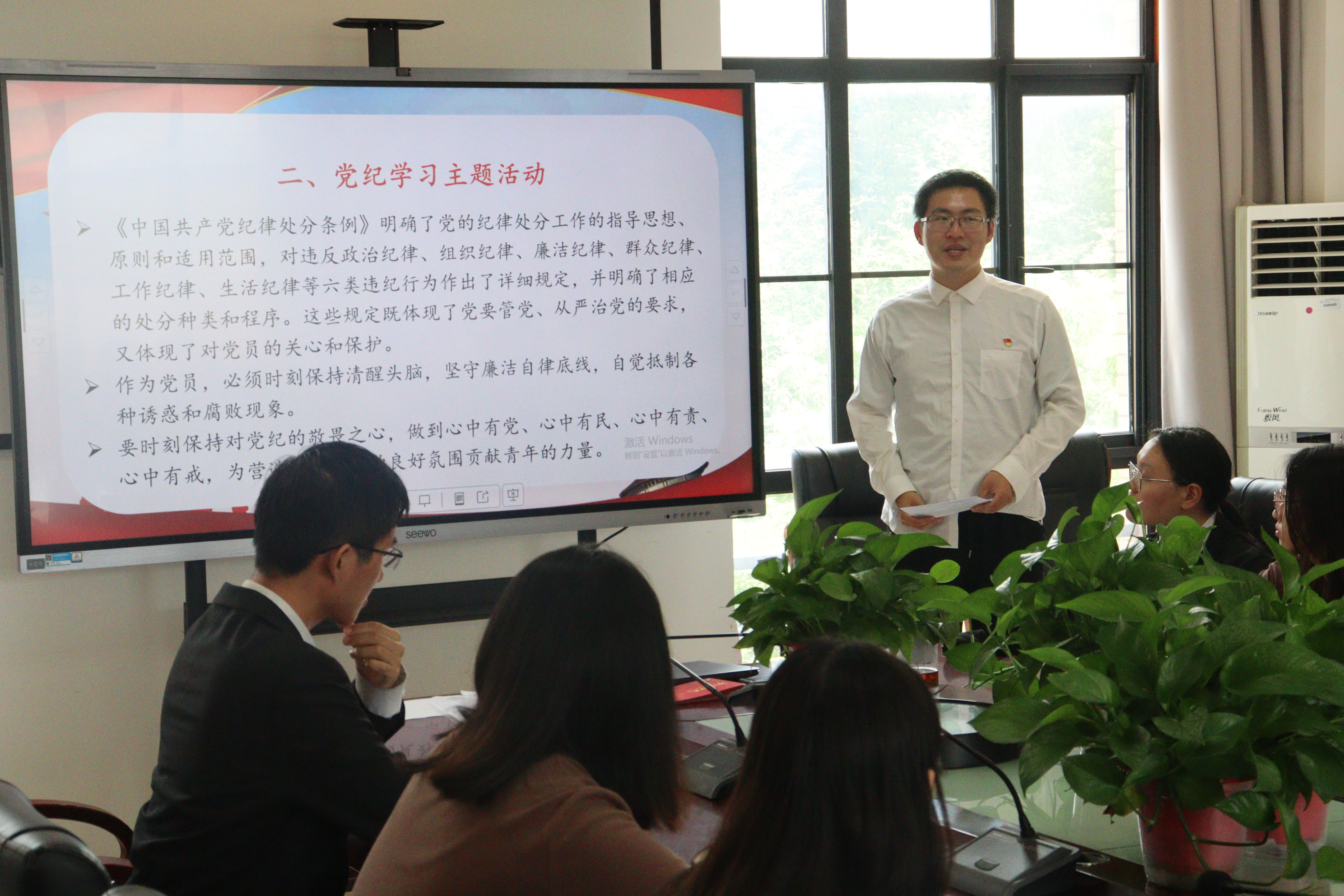 支部书记余佳瑞以“知纪于心守纪于行”为题,为毕业生党员讲了专题党课,回顾了《中国共产党纪律处分条例》中的重点内容,要求同学们结合自身实际学深悟透,在今后的工作生涯中必须时刻保持清醒头脑,坚守廉洁自律底线,严格遵守各项规章制度和操作流程,自觉抵制各种诱惑和腐败现象。要时刻保持对党纪的敬畏之心,做到心中有党、心中有民、心中有责、心中有戒,抵制各种不良风气和诱惑。
