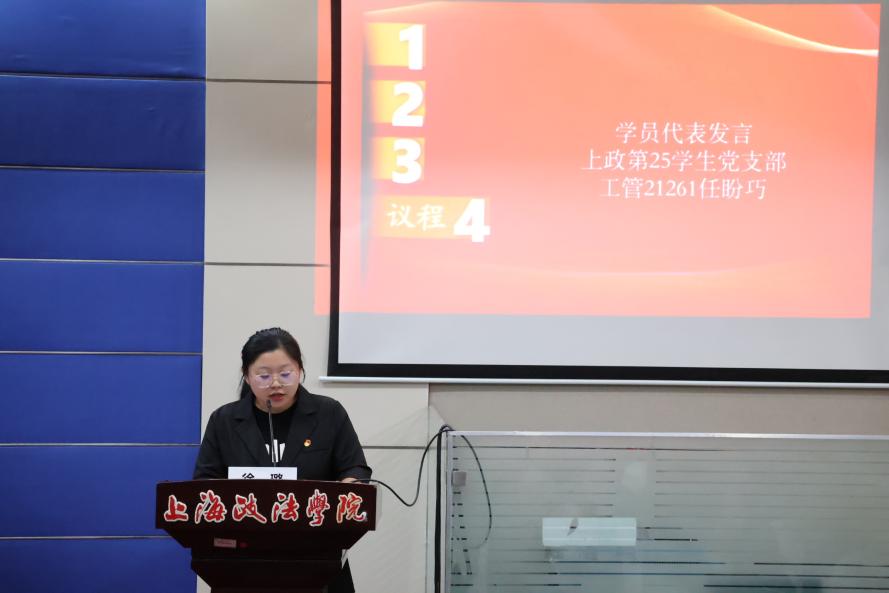 经济管理学院工管21261任盼巧同学作为学员代表发言,她表示:作为新时代青年党员应当始终坚持正确的政治方向,自觉用党的创新理论武装头脑,用实际行动诠释共产党人的担当和使命,将个人目标与国家命运紧密结合。