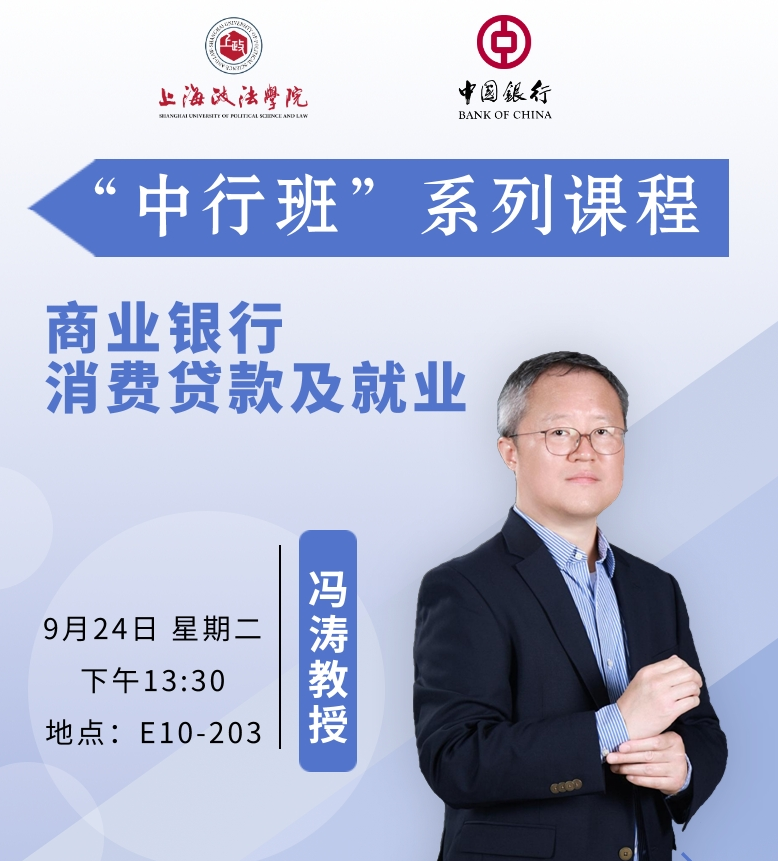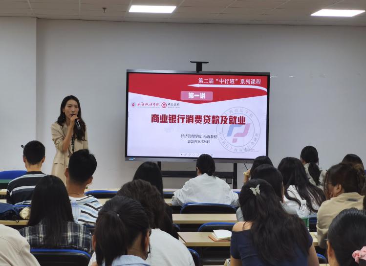 随着新学期的到来,我校与中国银行上海市分行共同打造的校企合作订单班“上政中行班”正式开课。9月24日,上政中行班“中行星期二”系列课程新学期第一讲特别邀请到经济管理学院冯涛教授围绕“商业银行消费贷款及就业”专题进行授课。