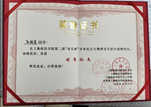 本届“求实杯”学术论文大赛围绕“共建共治共享:探索城市治理共同体的理论与实践”主题,吸引了众多学生的积极参与。经前期初赛、复赛,本科生组共15位同学进入决赛,研究生组共12位同学进入决赛。经过决赛现场答辩和校外专家综合评审,由刘星显老师指导的我院审计专业何予晗同学的论文以本科生组第1名的成绩获评“优秀论文”;由刘星显老师指导的法经济学专业唐榆茵同学的论文以研究生组第5名的成绩获评“优秀论文”。