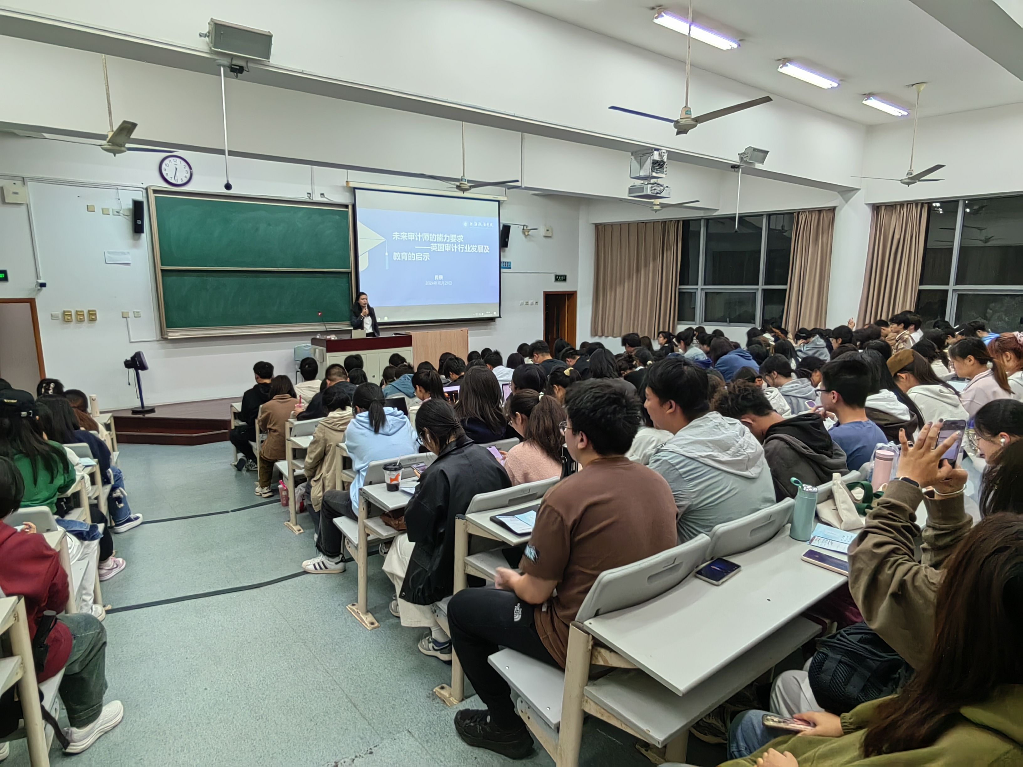 2024年10月29日18:30,审计学专业的肖侠老师在主教301B为学生带来了一场主题为《未来审计师的能力要求——英国审计行业发展及教育的启示》的专题讲座,近200名审计专业学生参加。这场讲座不仅为学生们展现了审计行业的前沿趋势,还为他们未来的职业发展指明了方向。