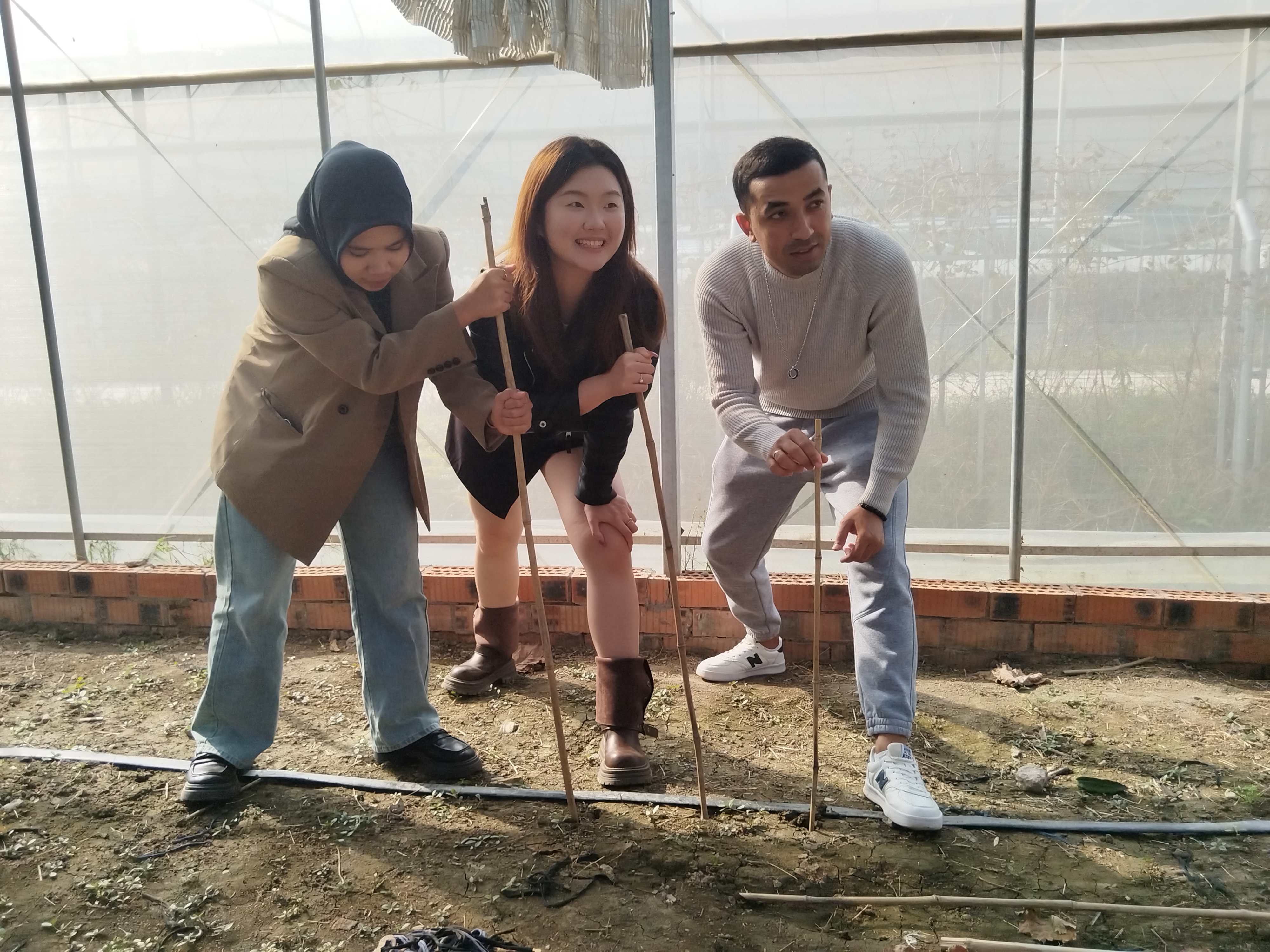 随后,留学生们转战火龙果种植研学基地,参与火龙果的种植过程,从土壤选择到种苗栽种,再到后期养护与剪裁叶片。留学生们不仅学习了火龙果的种植知识,还亲身体验了农业生产的艰辛与乐趣。这次独特的农业体验让他们对农业生产有了更全面、更深入的认识,也让他们对中国农业的现代化与机械化水平有了更直观的感受。