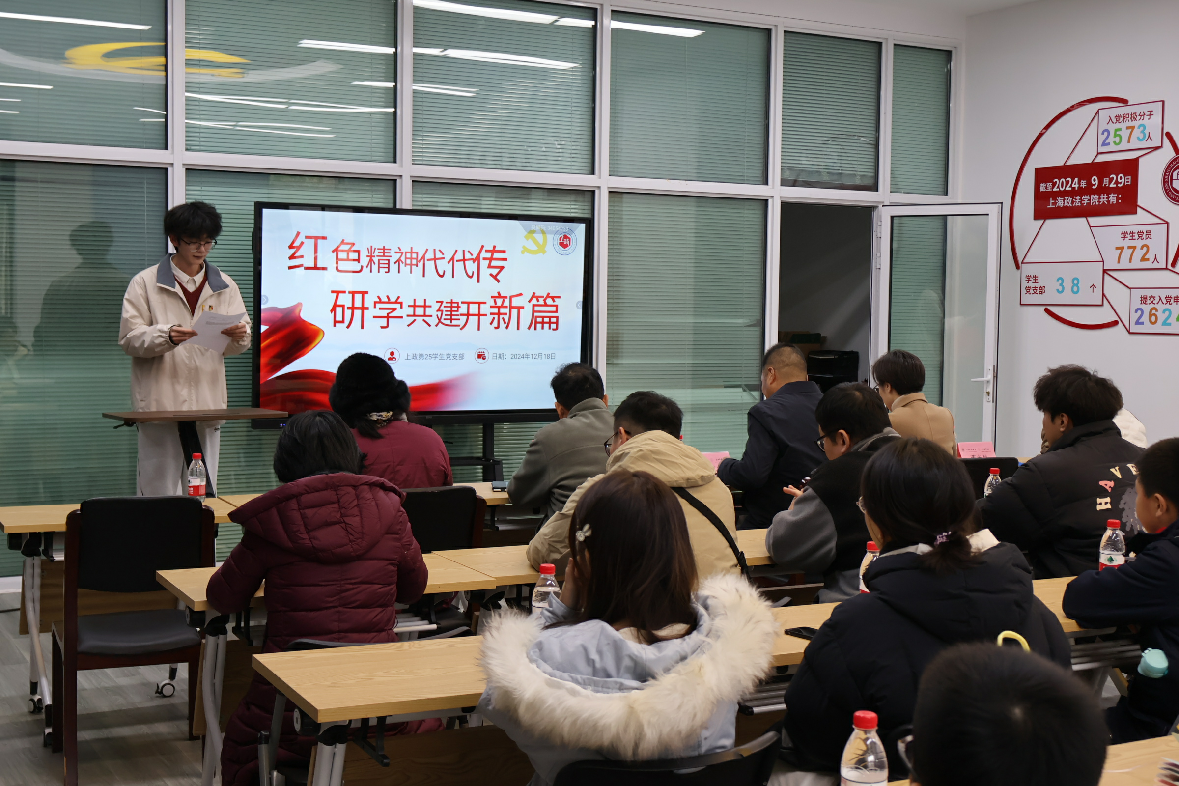 为深入推进大中小学思政一体化建设,贯彻习近平总书记关于思政课建设的重要论述。1218日下午,经济管理学院上政第25学生党支部与青浦区实验小学、豫英小学党支部开展党建共建活动。青浦区实验小学党支部书记王仁华同志、青浦区豫英小学党支部书记徐剑兰同志、青浦区豫英小学党支部副书记蒋丰呈同志和来自这两所学校的师生代表们来到上政校园,以“红色精神代代传,研学共建开新篇”为主题共话交流。经济管理学院党委副书记丁明强出席本次活动,活动由上政第25学生党支部书记严瑛主持,学生党员代表积极参加。