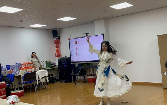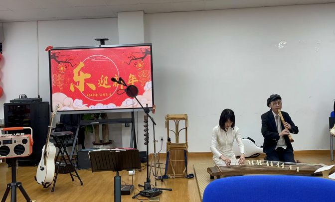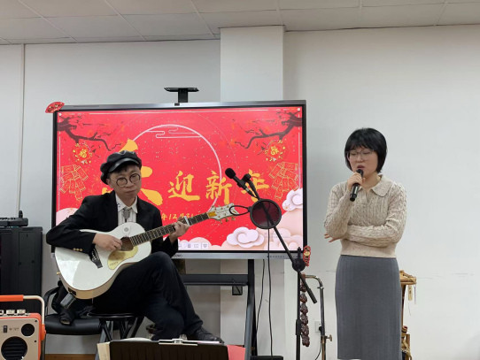 本次活动特别加入了一场名为《雪月花 岁末组曲》的古乐演奏。本次音乐会由刘星显老师组织电商教研室的老师们精心准备,经多次彩排练习,在2024年的最后一个工作日奉献给学院老师们。音乐会开始,刘星显老师的一曲古琴曲《酒狂》瞬间让心宁静下来;随后由刘星显老师和何予晗同学的尺八和古筝合奏《圣诞快乐劳伦斯先生》,欢快的乐曲把新年的气氛带入了会场;下雪啦,下雪啦!冬天的雪景该是白茫茫一片,走在雪地里吱吱的声音,松树林里满是松香的味道,漫想着雪地情景聆听《雪花》,由刘星显老师和马丽老师表演尺八与陶笛合奏《雪落的声音》;刘星显老师和李璟老师的吉他弹唱串起2025的《小幸运》,送给每个人幸运的2025;最后岁末漫舞,邀请在座老师以互动乐响器伴乐,由刘星显老师吹奏、徐威娜老师和马丽老师合唱《声声慢》《泪光闪闪》进入音乐快乐的高潮。音乐会别具一格,古乐演奏令在场老师乐(le)在乐(yue)中。