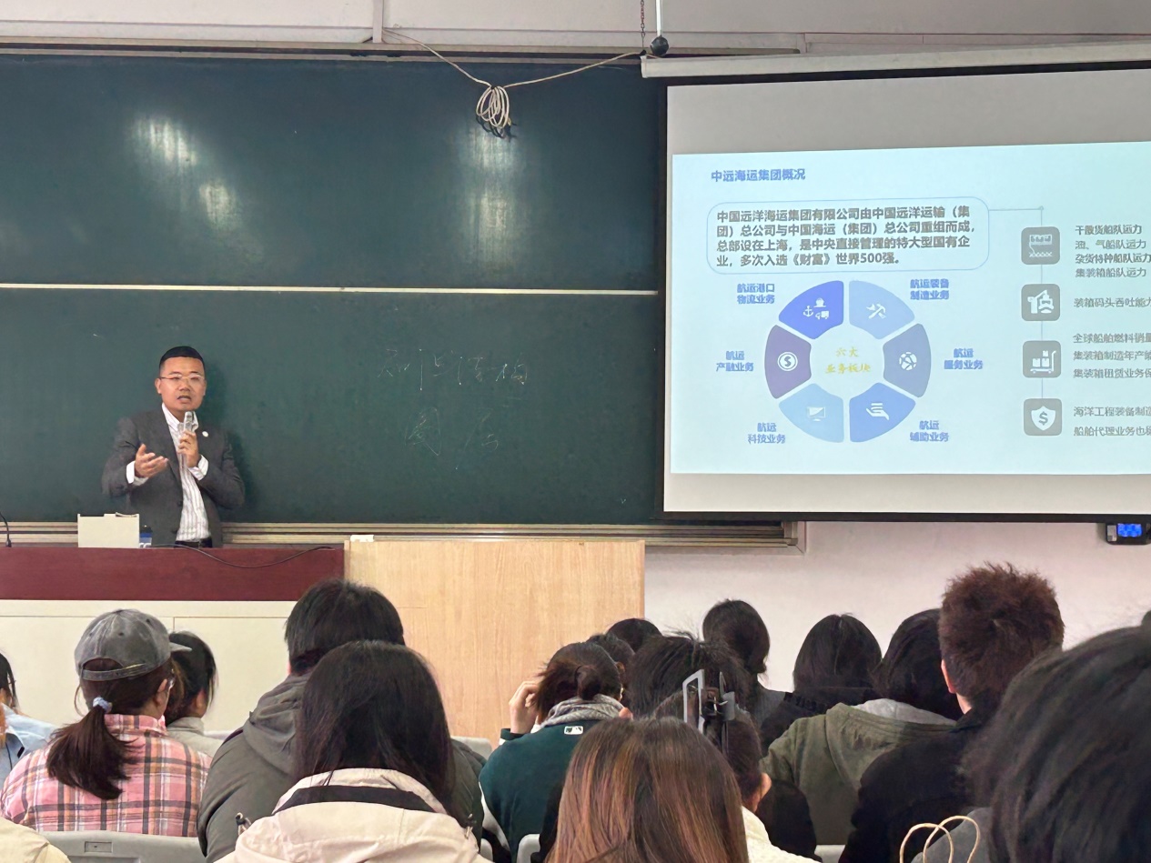2025年3月13日,经济管理学院CEO系列专题讲座在主教303A教室如期举行。本次讲座特别邀请到了上海南华国际物流有限公司董事、副总经理孟大观先生,为同学们带来“航运物流企业发展趋势及人才需求分析”专题系列讲座。经济管理学院院长刘宪教授在课前与嘉宾进行了亲切交流,刘宪代表学院对孟大观一行表示了欢迎,同时还与孟大观就区域经济发展变化及未来人才培养模式等方面进行了交流讨论,认为未来社会需求的人才培养更侧重于复合型创新能力,以便更好地应对人工智能时代发展带来的机遇与挑战。本次讲座由经济管理学院副教授潘汇丰主持。