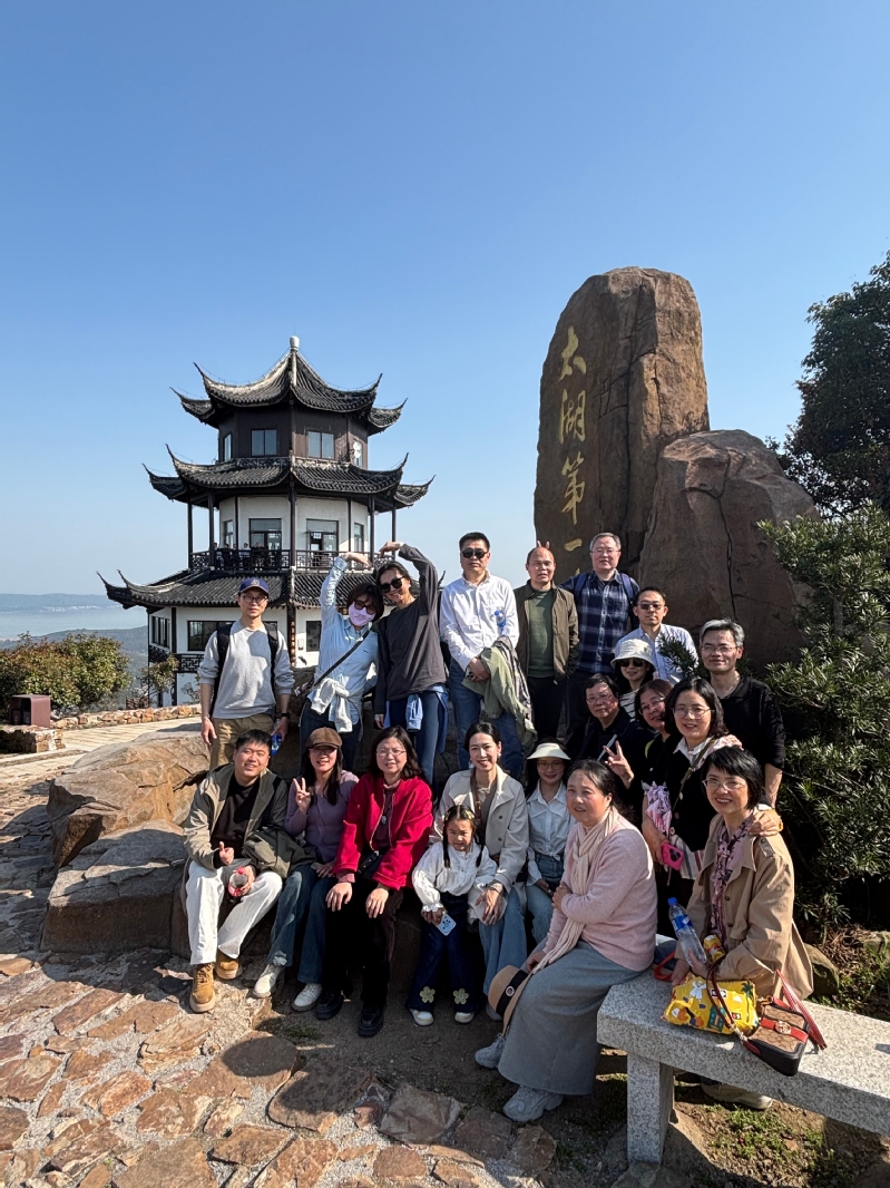 午餐后,大家一起爬山。缥缈峰位于苏州西山岛西部的西山主峰,海拔336米,为太湖七十二峰之首,被称作太湖第一峰,因经常被云雾笼罩,犹如传说中的缥缈仙境而得名。