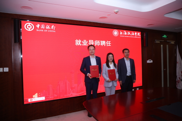 在就业导师聘任仪式上,高志刚为中国银行上海市分行行政事业机构部副总经理蔡晶、人力资源部高级人力资源经理王帅颁发就业导师聘书。作为金融班“招生-培养-就业”全链条育人体系的重要一环,“双导师制”整合高校学术资源与行业实战经验,从职业规划、实习就业、论文指导等维度提供全程陪伴式培养,通过产教深度融合,为金融行业精准输送懂理论、强实践、有情怀的复合型人才。