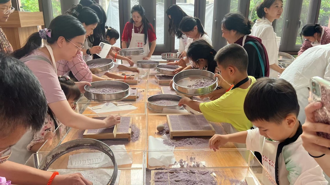 为丰富教职工精神文化生活,增进亲子情感交流,同时弘扬中华优秀传统文化,2025年6月25日下午,经济管理学院工会精心策划并成功举办了一场别开生面的“匠心传承 亲子乐学”叶榭软糕非遗制作体验活动。老师们携子女齐聚风景秀丽的广富林文化遗址公园,在充满古韵的“八十八亩田·叶榭软糕”店内,共同体验了这项松江本土国家级非物质文化遗产的魅力。