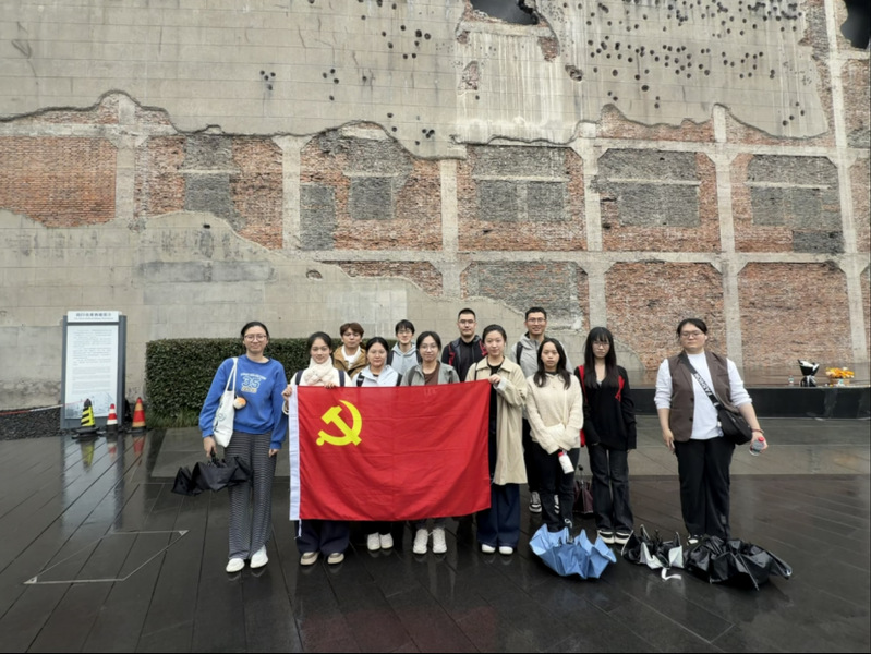 活动伊始,同学们参观了庄严肃穆的四行仓库抗战纪念馆。纪念馆外的墙体上还留存着当年的枪孔与炮弹的痕迹,岁月留下的斑驳将我们带回了那个烽火连天的抗战岁月。纪念馆分为“血鏖淞沪”、“坚守四行”、“孤军抗争”、“不朽丰碑”四大主题展区。每一幅历史照片、每一件实物展品、每一次场景复原,都生动再现了1937年淞沪会战中八百壮士坚守四行仓库、抗击日军的英雄壮举。支部党员们认真聆听、驻足凝视,深切感悟革命先辈为国家和民族挺身而出的家国情怀,接受了一次深刻的爱国主义教育。