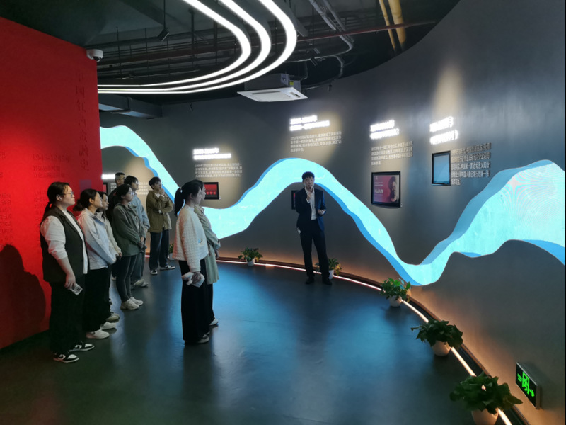 参观结束后,支部党员来到位于四行仓库二楼的上海证券投资者教育基地,开启了一场金融行业的调研实践之旅。在上海证券投教基地的张嘉仁老师的引导下,支部党员依次了解了中国共产党的红色金融史、中国证券市场的发展历程,以及上海证券的发展历史。从早期的行业探索到如今的多元化业务发展,从合规经营的坚守到金融创新的实践,上海证券在市场发展中的责任与担当给大家留下了深刻印象。