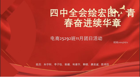 其中,电商25292团支部开展的主题团日活动立足专业特色,以“新时代电子商务及法律”为子主题,紧扣全会“高质量发展、民生保障、创新驱动”核心要义,结合“十五五”规划中“数字时代”发展要求,通过图文深度解析、视频生动宣讲、现场互动研讨等多元形式,引导同学们深入思考如何以专业所长助力跨境电商等产业升级。活动将理论学习与实践应用深度融合,有效推动全会精神转化为专业学习的内在动力与行动自觉,被评为优秀团日活动。