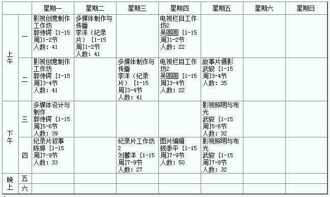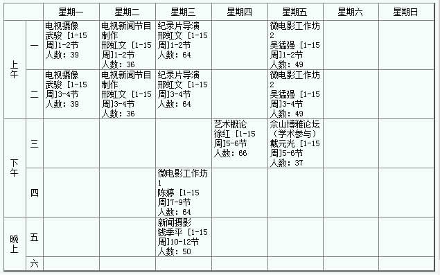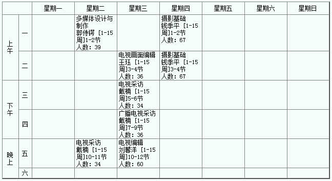 *注:上列课表未包括新闻学硕士研究生的课程。