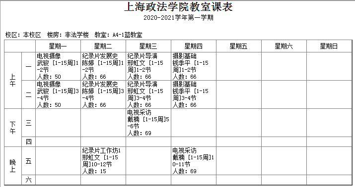 *注:上列课表未包括新闻学硕士研究生的课程。