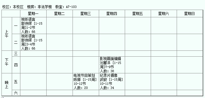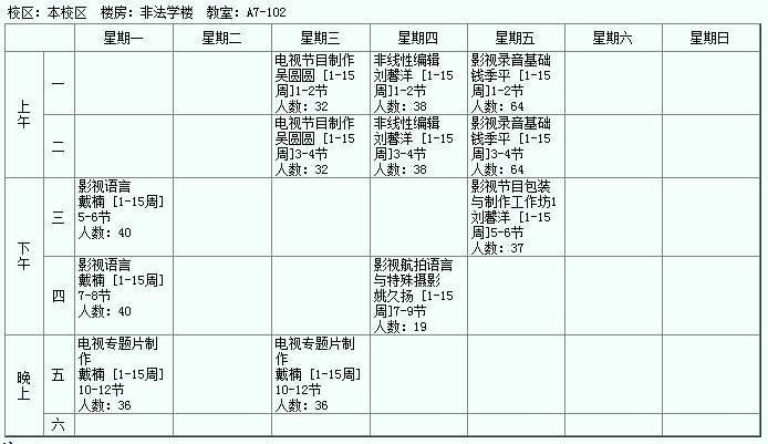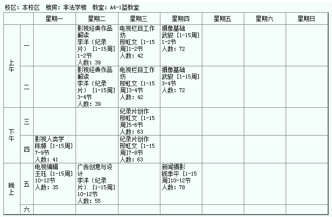 *注:上列课表未包括新闻学硕士研究生的课程。