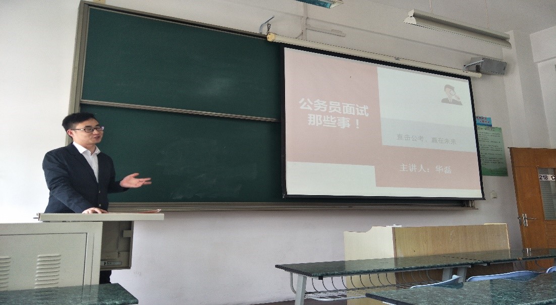 此次讲座主要围绕面试技巧展开,主讲人华磊结合常见的面试题型以及18年上海市公务员面试真题,从结构化面试的形式、流程、内容、考察的能力、注意事项等多个方面,为在座学生带来了一场深入浅出的高水平讲座。