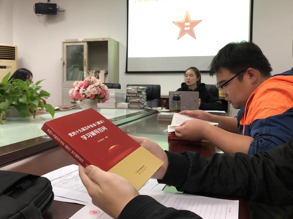 议程第三项为“深入学习贯彻党的十九届五中全会精神,迈进社会主义建设国家新征程”主题学习讨论会。支部党员共同回顾了公报要点,并结合阅读《党的十九届五中全会<建议>学习辅导百问》深入学习了十九届五中全会各项内容。支部成员在活动中积极展开了讨论,并针对此次学习表达了自己的感想。