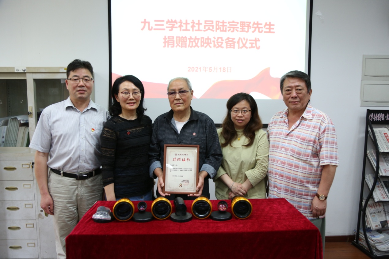 座谈会后,九三学社社员陆宗野先生为上海纪录片学院捐赠放映设备数台(件),为表彰其为学院建设做的贡献,上海纪录片学院特向其颁发了捐赠证书并举行了热烈的颁证仪式。