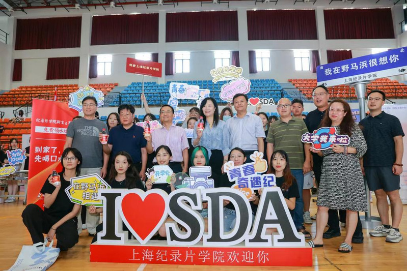 为减轻远道而来的家长同学的劳累,上海纪录片学院专门设立有“免费领水处”,摆满了贴有“到家了,先喝口水吧”字样的矿泉水。瓶身这一独特的设计让大家眼前一亮,也让新生们感受到了家的温暖。