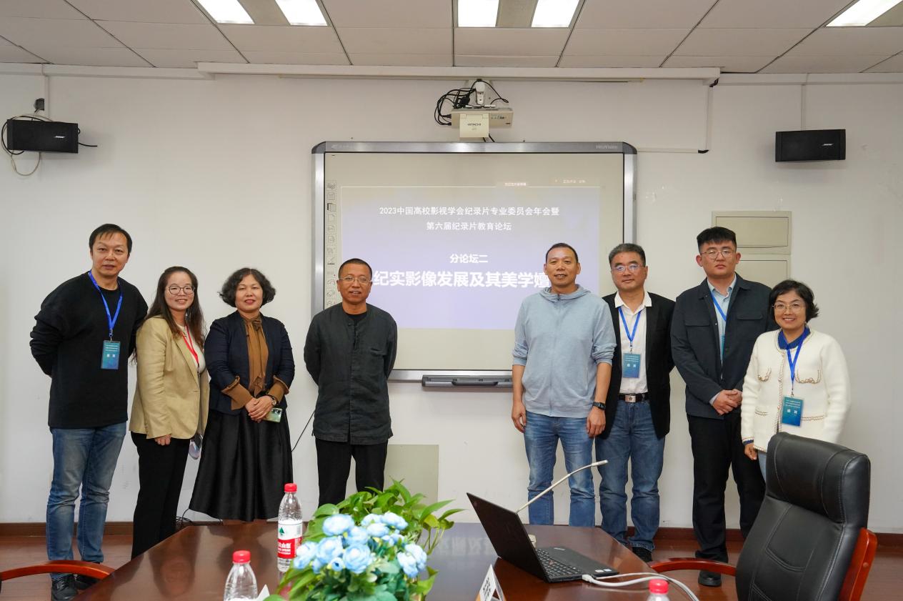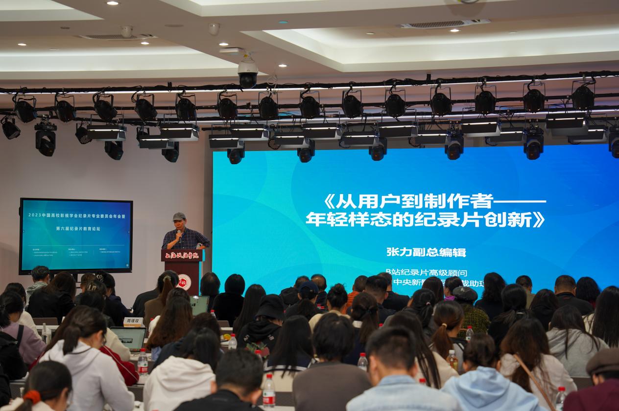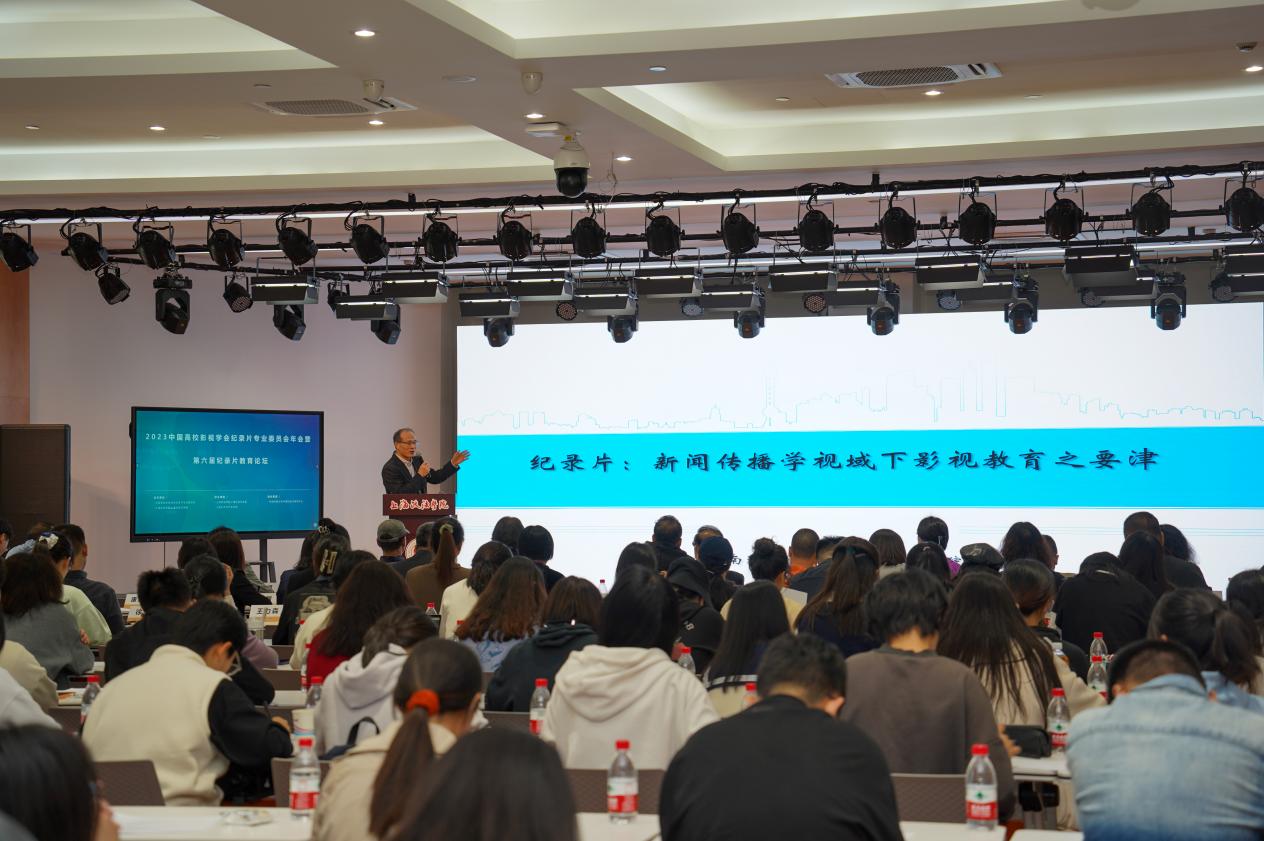 主题论坛由纪录片专业委员会秘书长、中国传媒大学李智教授主持。在主题论坛中,与会专家学者围绕“纪录片的教育与发展创新”展开讨论。中国传媒大学新闻传播学部副部长、中国纪录片研究中心主任、中国高校影视学会纪录片专业委员会主任委员何苏六教授发表题为《关于“中国纪录片学派”的思考》的主题演讲。他从必要性、正当性和建设路径几方面切入,指出在中国纪录片自主意识不断加强、社会转型与范式转换的当下,“中国纪录片学派”的提出恰逢其时。由何苏六教授担任首席专家的国家社科基金艺术学重大项目“中国纪录片的历史、理论与创新实践研究”是纪录片研究首次获批国家社科基金重大项目,标志着纪录片影响力的显著提升。“中国纪录片学派”旨在扎根中国历史和实践,构建具有自身特质的学术体系与话语体系,进而繁荣纪录片生产、创作和传播,打造更多彰显时代精神的中国精品纪录片。