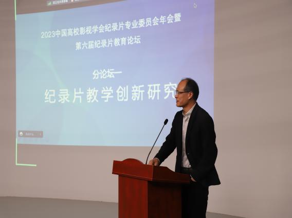 中国传媒大学新闻传播学部副部长、中国纪录片研究中心主任、中国高校影视学会纪录片专业委员会主任委员何苏六教授介绍了学会发展的历史沿革与突出贡献,同时也对学会未来的发展提出了殷切期待。