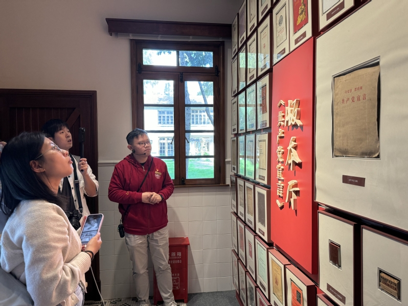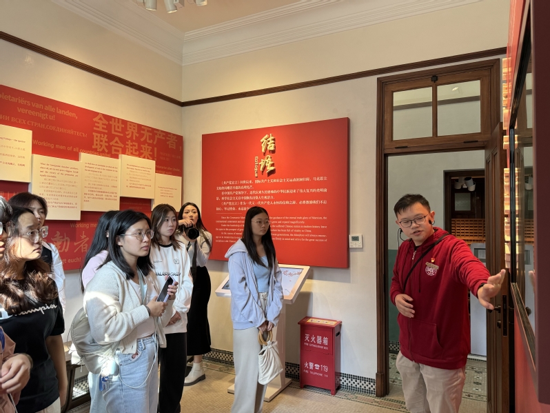 在讲解员的引导解说下,学生党支部的党员们走进陈望道先生的旧居,深入了解他的建筑作品和生平事迹。打开一本书,了解一个人,最终再去发扬一种精神。从陈列柜中的《共产党宣言》翻译本,到毛泽东主席亲笔签发的复旦大学校长一职任命委托书;从陈望道先生在柴房内翻译共产党宣言的图像,到他在书房中奋笔疾书的蜡像……通过参观学习一段段浓厚的历史文字,一张张珍贵的历史图像,党员们切身体会到了陈望道先生对理想信念的执着追求,以及他为信仰奉献一生的坚定信念,更加认识到自身作为中华学子所肩负的责任和使命,在红色基因中思考新时代,追寻共产党的故事,寻求信仰的源泉。