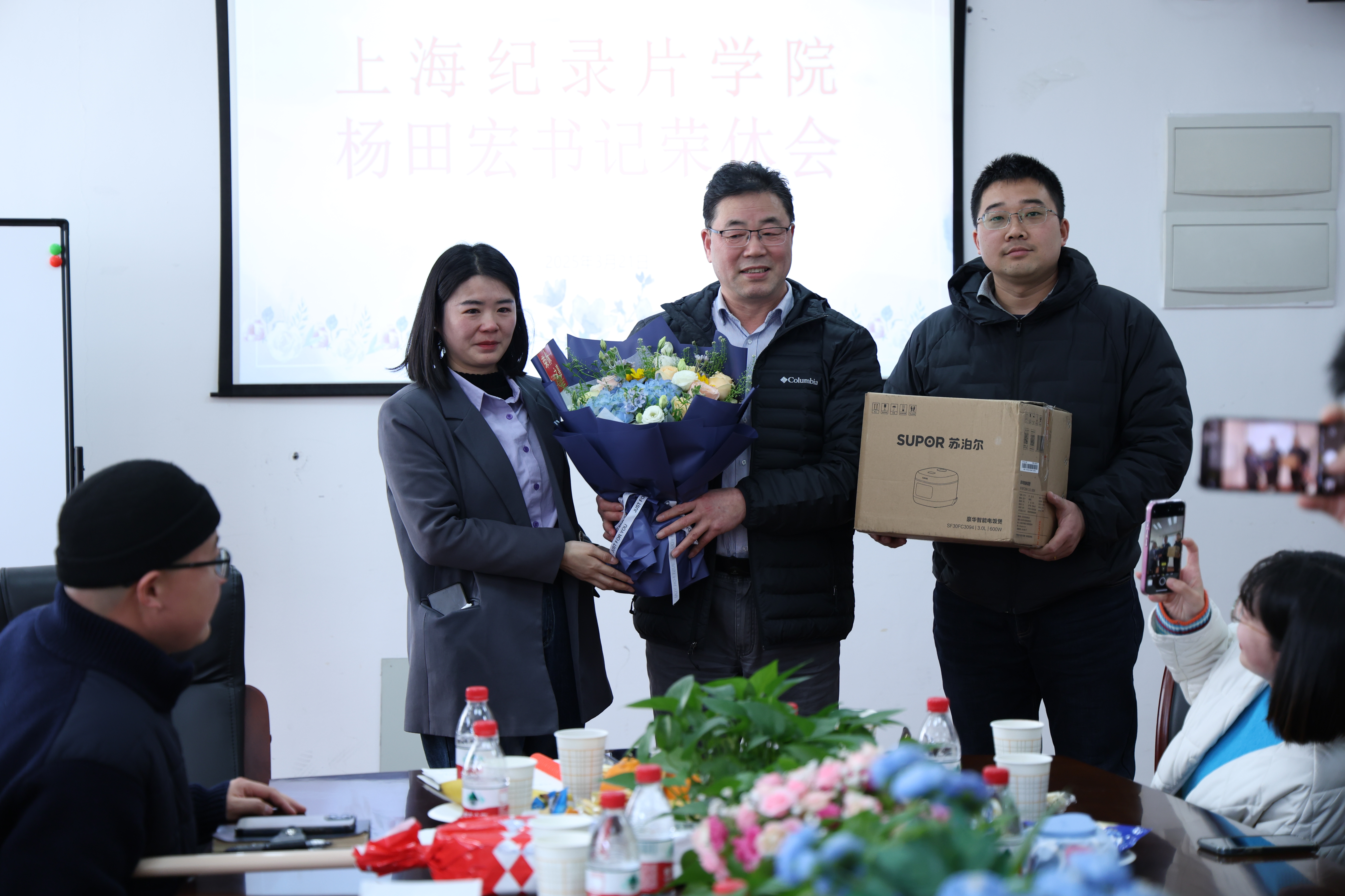近日,上海纪录片学院在明文苑A1-103为学院党总支书记杨田宏举办了荣休仪式。学院分工会主席姚久扬主持本次仪式。学院教师代表参加并为荣休教师送上祝福。