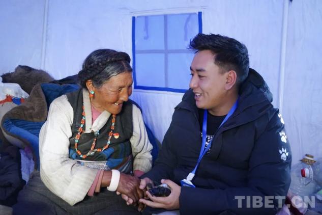 当他们离开一个受灾村子已经十几公里时,仍一直有个画面有个念头萦绕在赵振宇心头,使他不惜驱车返回——离开前,他在受灾村民安置点看见一位戴着党徽的藏族老奶奶。“她戴着党徽,年纪又这么大,会不会是老党员?” 回到安置点采访便得知,这位老奶奶是村里的第一任支书,已有二十九年党龄,一个藏族老党员的故事由此被看见。