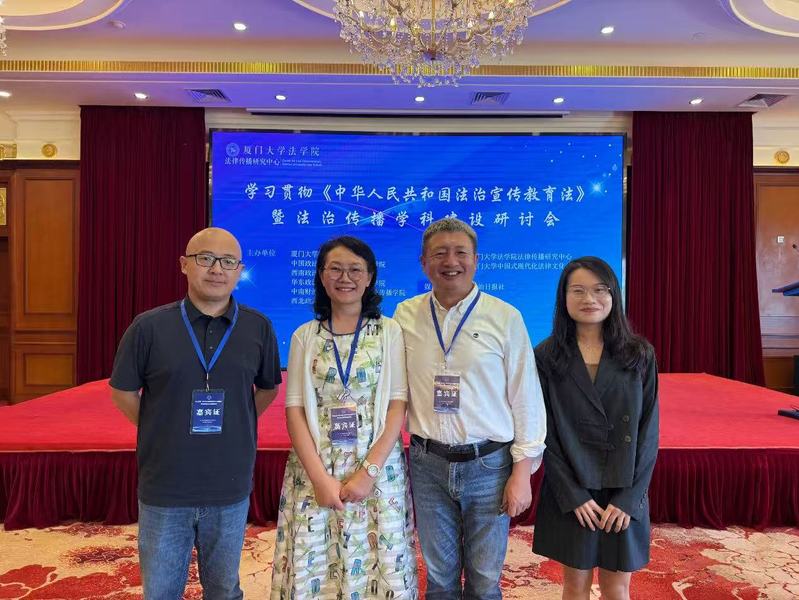 在厦门大学召开的这次研讨会上,除了厦门大学法学院和著名政法大学新闻传播学院的专家学者,最高人民法院、最高人民检察院、司法部相关领导也全程参会。研讨会从投稿中选取了26篇论文进行大会交流,还未正式挂牌的新利18官方客服法治宣传教育学院(上海纪录片学院)4篇论文入选,分别是院长郭炜华教授的《新时代“击木铎者”说:基于对<法治宣传教育法>的文本精读》、副院长孙健教授的《中国共产党早期的法治宣传教育:基于社会治理的视角》、网络与新媒体专业负责人赵微副教授的《<法治宣传教育法>的中国话语体系建构》、网络与新媒体专业青年讲师吴圆圆、何佳合作的《普法主导力:媒介变迁视阈下的法治认同重构机制》,郭炜华、孙健、赵微还分别受邀参与了“法治传播的时代责任与使命”“《法治宣传教育法》的立法与实施”“法治传播人才培养、学科构建与实践逻辑”等专题的与谈。