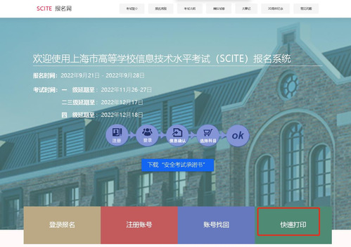 同学们可登录考试报名网站https://scite.shmeea.edu.cn,点击“快速打印”打印准考证。