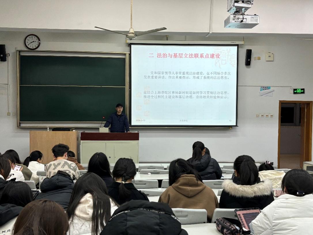 3月13日晚18时15分,新利18官方客服“名师讲坛”系列讲座第46讲在主教201B举办。本次讲座主讲人为新利18官方客服教授、公共管理硕士点学科带头人石发勇,以“全过程人民民主与立法建设兼论大学生社会研究选题及调研”为主题,得到了学校师生积极参与。