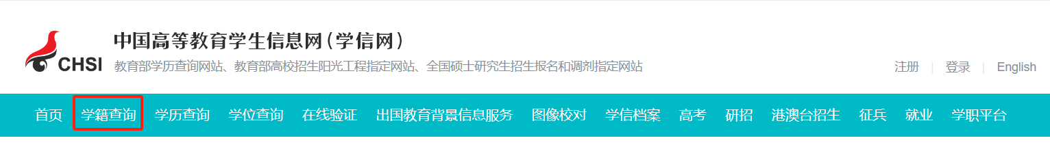 1. 学生本人登录“中国高等教育学生信息网”(http://www.chsi.com.cn),点击最上方菜单栏“学籍查询”选项