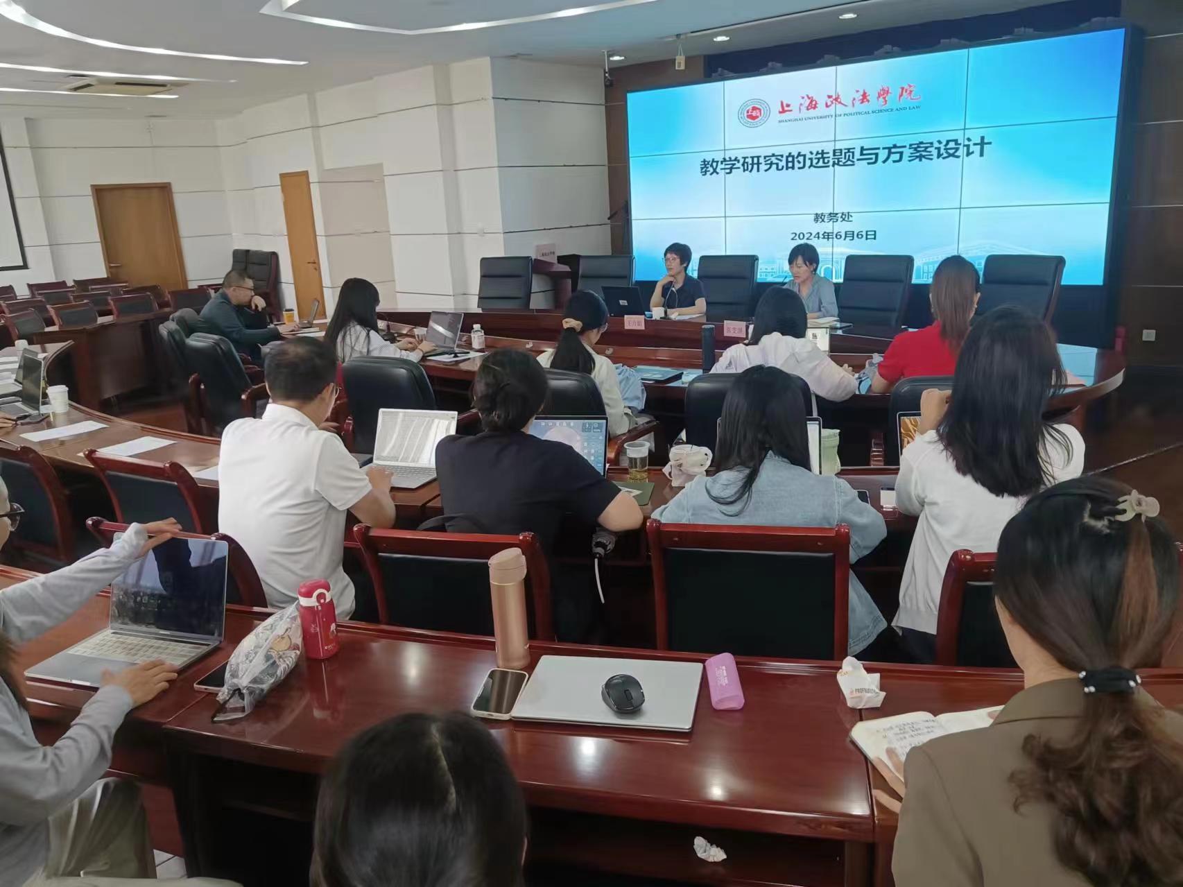 6月6日下午,教务处组织开展2024年新教师入职培训“校本研修”活动,邀请上海交通大学教学发展中心副研究员王力娟作题为“教学研究的选题与方案设计”专题讲座。学校“校本研修”教师、其他对教学研究感兴趣的教师及教务处相关人员30余人参加讲座。讲座由教务处张雯淇主持。