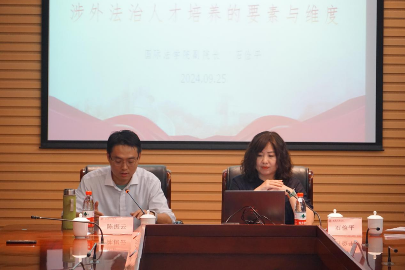 石俭平表示,在培养涉外法治人才的过程中,应当注重将法治思维与国际规则相结合,推进法治人才的国际交流与合作,增强法学教育的实用性与前瞻性,培育具有国际竞争力的法治人才。陈振云副教授也结合自身经历为大家讲解了国际交流的重要性以及语言学习的要点。
