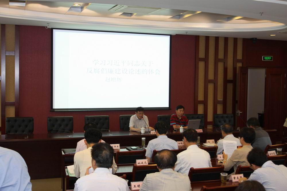 6月24日,学校在校部楼107会议室召开党委中心组(扩大)学习会。上海市纪委编制办主任、上海市廉政研究会常务副会长赵增辉应邀来校,为党员干部作了题为“学习习近平同志关于反腐倡廉建设论述的体会”的党风廉政报告。学习会由党委书记杨俊一主持。全校处级以上干部(含助理)参加。