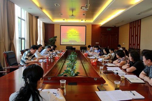 7月1日下午,正值建党94周年,学校在校部楼101会议室召开“庆祝中国共产党成立94周年座谈暨‘三严三实’专题教育推进会”。校党委书记杨俊一出席 并讲话,各二级学院党总支负责人、机关党总支副书记和党委相关部门负责人参加会议。会议由校党委副书记、纪委书记霍光主持。