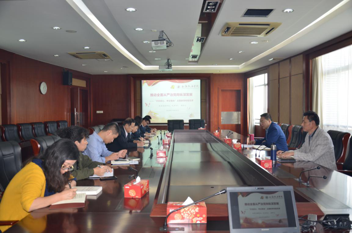 2019年10月21日下午,学校党委副书记、纪委书记潘牧天在求实楼413会议室讲“不忘初心、牢记使命”主题教育专题党课。党课由纪委副书记、监察室主任邓骏主持,学校纪委委员、刑事司法学院及警务学院党政主要领导、纪委监察室工作人员参加。
