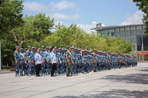 在炎炎烈日下,教官们认真尽职,以身作则,对学员们高标准严要求,参训学员们也能够克服高温炎热困难,刻苦训练,稳扎稳打,轻伤不下火线,以积极饱满张扬奋发的精神状态迎接每一天的军事训练,力求动作到位,力争细节完美。训练之余,各军训中队还开展了拉歌、拔河、篮球比赛等丰富的文体活动。