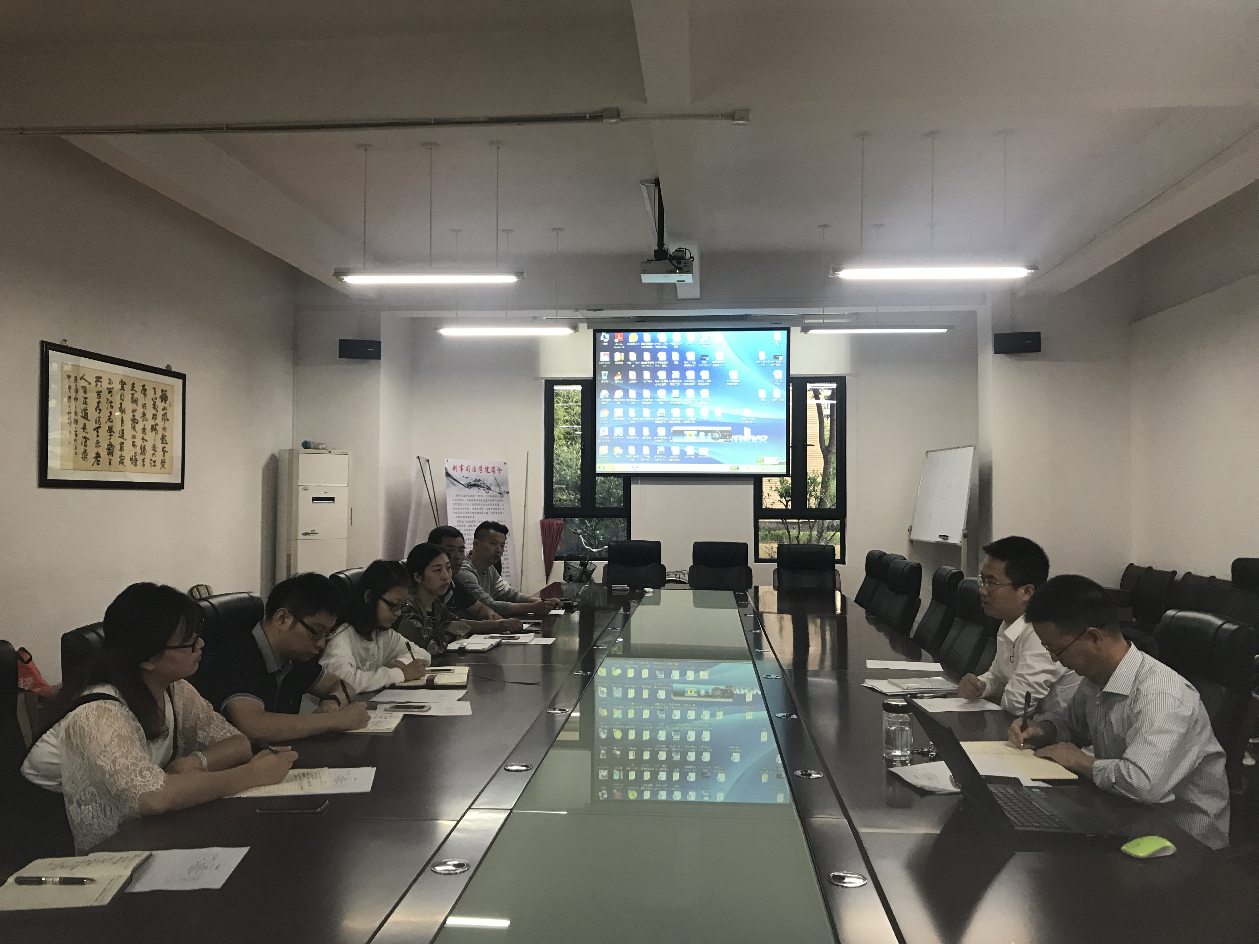 四、第八届监狱学会议准备工作:该议题由辅导员谢晨杰介绍10月27日-10月29日,我校与江苏司法警官高等职业学校合办的第八届监狱学会议的筹备情况,并说明筹备工作遇到的困难,以便与会人员讨论解决问题的办法。