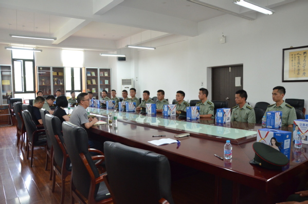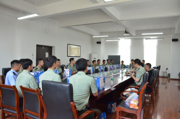 6月26日下午,刑事司法学院-警务学院党总支书记胡冠时、警务学院常务副院长蔡一军副教授、警务学院党总支副书记储德峰副教授、刑事司法学院党总支副书记徐海琨亲切看望学院19名担任学校2018年军训教官,并向全体教官发放了军训慰问品。