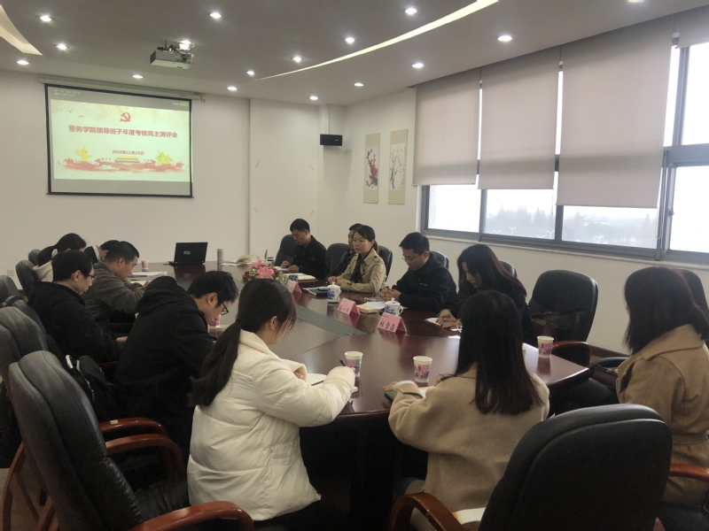 11月24日上午,警务学院举行2020年度领导班子述职民主测评会。警务学院全体教职工出席测评会。会议由学院党总支书记马小娜主持,离退休党总支组织员刘姝娴老师莅临组织测评。