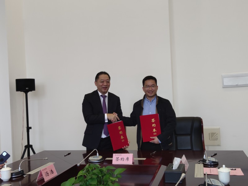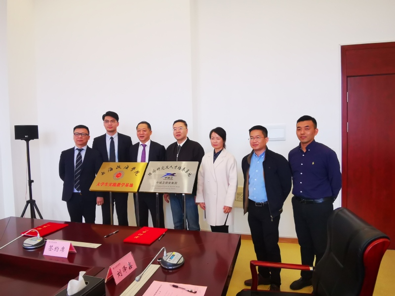 蔡一军与肖芃代表双方签约。潘牧天与肖芃为双方“大学生实践教学基地”和“理论研究与人才培养基地”揭牌。