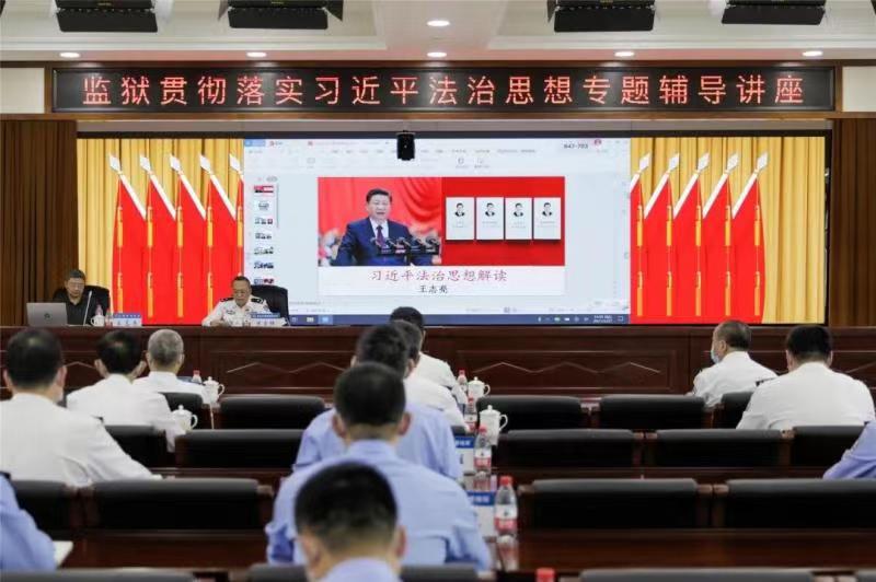 王志亮教授以“习近平法治思想解读”为题,围绕为什么提出习近平法治思想、习近平法治思想的内容、监狱如何贯彻习近平法治思想等三个方面,全面梳理了习近平法治思想形成的实践脉络、历史脉络,深入阐述了习近平法治思想的科学内涵和核心要义。